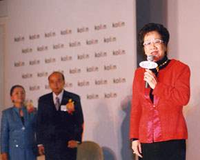 副總統致詞時表示,她今天應邀前來祝賀歌林公司四十週年慶,除了是以副總統的角色外,也是以好鄰居的身分,因為她就住在歌林大樓的十二樓,過去由於體制未臻健全,副總統成為無殼蝸牛,因此,當歌林公司李董事長主動提出邀請,表示願提供居所後,她便與歌林公司結了善緣。