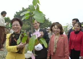 副總統首先抵達台南縣後壁鄉參加由土溝農村文化營造協會所主辦的「預約綠色城市:綠足台灣.種下農村新希望」活動,除為公園水牛雕像揭幕、親植蘋婆樹及按手印留念外,也在致詞時肯定鄉親們為美化、綠化環境所作的努力。
