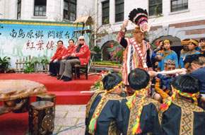 記者會在台東傳統樂鼓聲中揭開序幕,總統在致詞後,並接受紅葉少棒代表致贈象徵紅葉精神傳承的球棒,及代表開啟台東成為南島文化研究重鎮的「南島之鑰」。