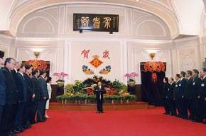 陳總統水扁先生及呂副總統秀蓮女士今天上午一同參加總統府新春團拜。總統致詞時除感謝在假期中所有堅守崗位、捍衛國家安全、維護社會治安全體工作人員的辛勞外,並期勉所有政府同仁,都能以民眾福祉為優先,積極掌握時效,為刺激景氣開創更有利的條件。
