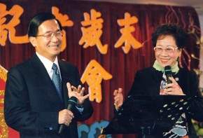 陳總統水扁先生今天下午偕同呂副總統秀蓮女士參加總統府與記者聯誼餐會,現場獻唱即席改編歌詞,讚美勇敢台灣人,並致詞預祝全國同胞羊年吉祥、平安如意。