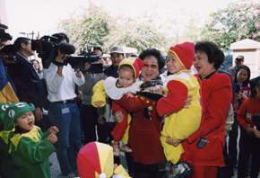 中午,副總統在參訪彰化縣社頭鄉立托兒所時,除受到托兒所師生的熱烈歡迎外,並接受小朋友自製的賀年卡,祝賀副總統身體健康、新年快樂、洋洋得意。