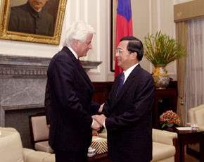 陳總統水扁先生今天上午接見「義大利國會議員訪問團」,對他們以具體行動表達對台灣的支持以及推動台義關係的努力和貢獻,表達由衷的謝忱。
