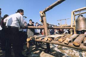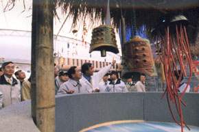 陳總統水扁先生今天上午前往屏東,參加墾丁風鈴季活動,除欣賞恆春民謠演出外,也敲響祈福鐘及在祈福卡上簽下「墾丁風鈴叮噹響、新春如意喜洋洋」,並應邀致詞。