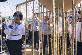 蘇縣長也曾告訴阿扁,恆春有家陶藝工作坊因為風鈴季活動的鼓舞,今年開始用手工來量產陶磁風鈴,而跨年紀念的蓮霧風鈴,為了應付民眾的索取,現在還在趕工加製。風鈴的製作今天可能還只是剛要成長的小枝芽,但未來就會綠蔭成林,這就是以傳統工藝結合現代創意,積極開發觀光產業最好的見證。