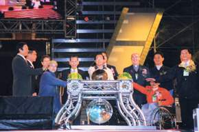 陳總統水扁先生今天晚間參加「夢想起飛.活力新台灣」總統府跨年晚會,除應邀致詞外,並與其他受邀的「追夢高手」一同觸摸水晶球,啟動、點燃「活力新台灣」字樣。