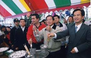 陳總統水扁先生今天中午前往台南縣白河鎮關子嶺參加「溫泉暖羊羊、美食打牙祭-關子嶺風景區觀光系列活動」,總統除應邀致詞外,也品嚐具有地方特色的美食,並親自煮溫泉蛋。總統在活動中致詞內容為: