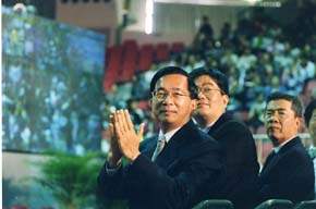 所以,當阿扁知道九二一基金會所推出的「臨門方案」,在大家的努力下,已經兌現了承諾,也就是說已經有五十棟的集合住宅大樓可以順利動工重建,阿扁感到非常欣慰。阿扁也知道,這五十棟透過民間捐款協助重建的大樓中,最早動工的名流藝術世家社區已經完工入厝,過了農曆新年,大家播下的種籽,就要開始綻放美麗的花朵,因此,阿扁要利用這個機會,代表政府向所有捐款大眾表達感謝之意,因為您們的愛心,讓九二一災後重建看到希望。