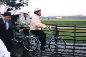 陳總統水扁先生今天上午前往台北縣二重疏洪道親水公園參訪,除聽取相關簡報外,也在蘇貞昌縣長的陪同下,騎自行車參觀各項設施。總統在致詞時首先表示,看到「二重疏洪道」裡面有寬闊的綠地,還有許多民眾在親水公園遊憩、運動,在幾年以前是完全無法想像的。而今天卻已經成為大台北都會區最大,也是最好的休閒去處。有這麼大的活動空間,對寸土寸金的台北縣來說,實在是縣民們的好福氣。