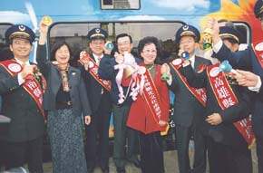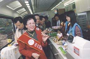 隨後,副總統在行政院副院長林信義及各縣市首長陪同下,登上餐車。在車上副總統並前往澎湖、屏東、高雄市、縣、台南市、縣、嘉義市、縣等八縣市車廂參觀、品嚐富有地方風味的各項特產。