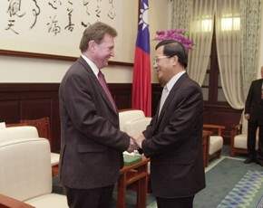 英國倫敦大學高等法律研究院院長萊德博士偕同英國城市大學商學院金融管理中心主任中島博士(Chizu Nakajima)下午是由外交部次長杜筑生陪同,前來總統府晉見總統,總統府副秘書長吳釗燮也在座。