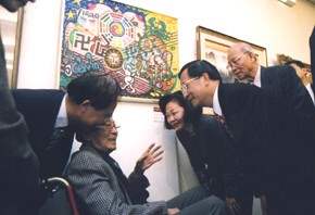陳總統水扁先生今天上午參加「六五台陽、甲子風華」特展頒獎典禮,並參觀楊三郎、李石樵、顏水龍、李梅樹和陳澄波、廖繼春等藝術大師的作品並應邀致詞。