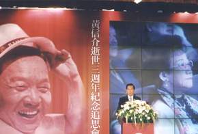 陳總統水扁先生今天上午偕同呂副總統秀蓮女士前往圓山大飯店,參加黃信介先生紀念追思會,總統應邀致詞時首先表示,三年前的今天,信介仙不幸往生,但是大家仍然對他抱著無比的敬意與懷念,他是台灣人民心目中「永遠的歐吉桑」,也是民主進步黨「永遠的主席」。