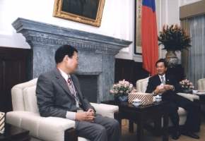 第廿五屆吳三連獎得獎人楊青矗、許文融、柯芳隆、王世慶等一行,上午由吳三連獎基金會董事長陳奇祿陪同,前來總統府晉見總統。總統府副秘書長陳哲男也在座。