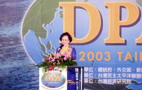 副總統也表示,北京當局不惜耗費金錢發展武器,並不時對準台灣,但是她的人民每天至少一百人以上偷渡冒險來台;北京領導人用飛彈對準台灣,不僅嚇不倒台灣,她們自己人也沒被嚇倒,三更半夜更要偷渡來台。她指出,台灣不是天堂,但對很多大陸人民來說,台灣的領導人由人民直選,人民也可批評總統,光此一點,就讓大陸人民欣羨不已。她並以SARS為例表示,當SARS發生時,陳總統不惜代價拯救生命,然而北京當局卻長達十個月隱瞞疫情,到今天,造成SARS疫情的原因以及她們如何處理病患,仍是一個謎。她指出,台灣與大陸最大不同在於,我們有人權、民主、和平、愛心,與高科技的五大基本國力,然而大陸人民連投票選舉國家領導人的基本人權也沒有,人命也不重要,她希望今天的與會人員一起表達共同的五項柔性力量,影響北京,使北京讓聯合國為台灣開啟大門。她也希望,在明年或不久的將來,北京的民主大門已經開啟,進一步讓所有人類分享民主人權和平。