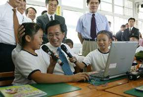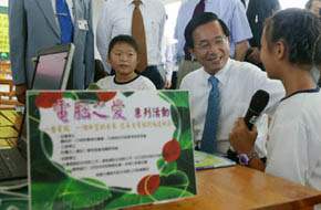 總統參加「電腦之愛-一台電腦.一個希望」送再生電腦至偏遠地區活動將再生電腦送給台中縣外埔鄉安定國小