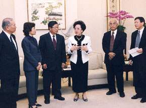 副總統也向訪問團說明現階段政府所面臨的情況,她表示,過去執政政府所累積的債務、九二一地震的重建、中國大陸的磁吸,以及全球化衝擊等因素,給政府帶來很大挑戰。