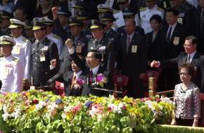 陳總統水扁先生偕夫人及呂副總統秀蓮女士今天上午參加在總統府前廣場舉行的中華民國各界慶祝九十二年國慶大會,並應邀致詞。