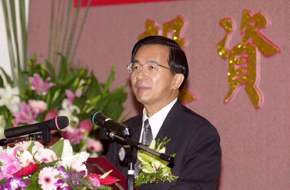 在此阿扁除了要請各位產業界的先進,充分發揮影響力,讓立法院能早日通過所需要的法案、預算,使新一波公共投資的熱潮能早日啟動。同時也要在此向各位理事長呼籲,全力支持即將舉辦的「國際招商大會」,並積極增加對台灣的投資,使國內景氣復甦的力道更加強勁,也使產業體質更加強健。總之,只要大家對自己有信心、對台灣有信心,一定能夠為產業的發展找到新的定位,重新建立起台灣的新經濟、新優勢,並使台灣經濟在新世紀繼續發光、發熱、傲視群倫。