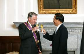 贈勳儀式下午三時在總統府舉行,英國寇克伍德爵士(Sir Archy Kirkwood)、英國貿易文化辦事處處長馬德睿(Derek Marsh)、英國國會議員佛斯特(Don Foster)、貝勒特(John Barrett)及總統府副秘書長吳釗燮等也在場觀禮。