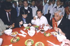 稍後,總統並轉往高雄市鼓山區的代天宮參香,並到廟口品嘗旗魚丸湯。