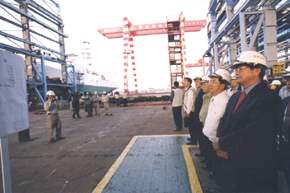 陳總統水扁先生今天下午前往高雄市參訪慶富暨豐國造船股份有限公司,除聽取相關簡介外,並實地參觀造船廠作業情形。