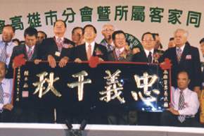 隨之,總統轉往高雄市三民區義民廟,出席世界客屬總會高雄市分會暨所屬客家同鄉會聯合會員大會。總統致詞時,以客語向所有鄉親問好,並呼籲所有的客家鄉親,要站起來,走出去,走出客家人自己的路。
