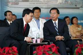 上個月二十三日,當聽取了陳署長和蘇局長有關「因應未來SARS之防治措施專案報告」後,阿扁特別裁示:「由行政院協調各有關部會,針對各項防疫的標準作業程序,不論是發燒篩檢、居家隔離、離島後送、專責醫院的啟動,以及醫護人員的安全維護,要擬訂演練實施計畫,實地進行演練並驗收成果。」今天非常高興看到衛生署主動整合感染症醫療網,進行離島地區SARS個案後送就醫演練,以萬全的準備,迎戰今年冬天可能捲土重來的SARS疫情。