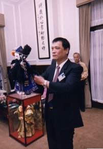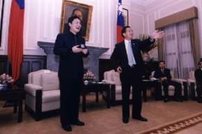 台灣省地方戲劇協進會理事長蕭建平等一行上午台灣省主席范光群陪同,前來總統府晉見總統,總統府副秘書長陳哲男也在座。