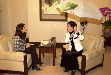 專訪後,副總統為凸顯女性從政的特色,特別致贈哈蒂瑪水蓮傘,並歡迎訪賓明三月時再來台灣採訪我國的選舉活動。