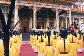 陳總統水扁先生今天上午至位於台南縣南化鄉的「一貫道玉山寶光聖堂」,應邀參加「明明上帝秋季大典」活動及致詞,中午並和道親們共進素齋。