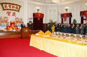今天是農曆春節過後第一天上班,阿扁首先要在這裡向大家拜個晚年,祝大家猴年行大運,新年新氣象。同時,阿扁也要藉這個機會,向所有在春節期間,為捍衛國家安全、維護社會治安,甚至是為推動重大建設而犧牲假期的工作同仁、夥伴及先進,表示最誠摯的感謝與最高的敬意。因為有大家的努力與付出,才使全國的民眾能夠全家團圓,平安歡度一年中最溫馨、最快樂的新春年假。