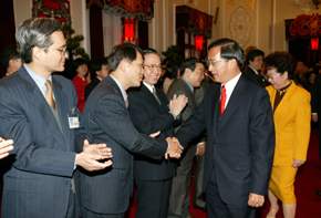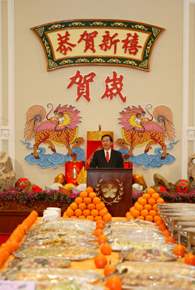 陳總統水扁先生今天偕同呂副總統秀蓮女士參加總統府新春團拜,並致詞。
