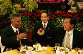陳總統水扁先生今天晚間在新竹縣關西鎮以國宴款待吉里巴斯共和國總統湯安諾(Anote Tong)伉儷暨訪問團一行,中央政府首長及新竹地區地方首長及各級民意代表也與宴作陪。