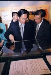 這次展覽的主題「總統府來了!」為總統府主動走向人民做了最好的詮釋和表達,阿扁要特別感謝高雄市政府在謝市長的領導下,展現巧心慧思,做這麼好的安排,讓阿扁將「總統出訪暨總統府文物展」的第一次就給了高雄市的鄉親!