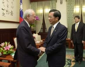 陳總統水扁先生今天上午接見日本醫學會會長森亘博士,對他來台參加台灣醫學會一百週年回顧與展望研討會及全國醫師公會慶祝醫師節大會活動,表達誠摯歡迎之意。