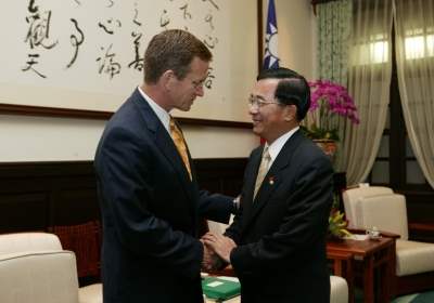 陳總統水扁先生今天上午接見美國德州風味牛排館業主亨迪(Edd C. Hendee)夫婦,並代表政府及人民表達誠摯歡迎之意。