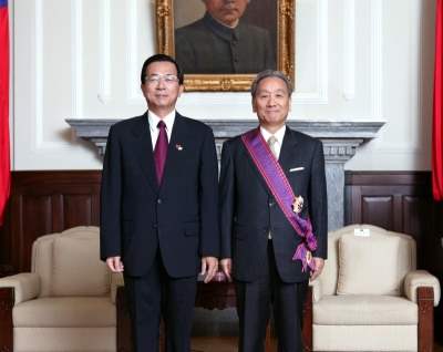 贈勳儀式上午八時三十分在總統府舉行,總統府內各局處室主管及國家安全會議副秘書長柯承亨、江春男等人也在場觀禮。