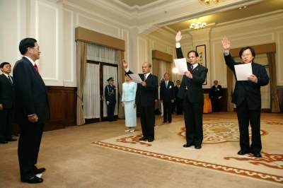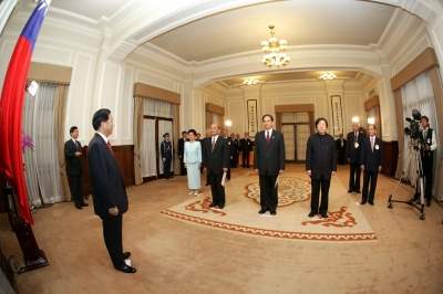 陳總統水扁先生今天上午在總統府簽署新任行政院院長游錫堃、總統府秘書長蘇貞昌及國家安全會議秘書長邱義仁的任命令。隨後並在總統府舉行三人的宣誓典禮,由總統親自監誓,呂副總統秀蓮女士在場觀禮。