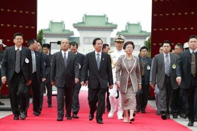 中華民國第十一任總統、副總統遙祭 國父陵典禮,今天在台北圓山忠烈祠隆重舉行,陳總統水扁先生、呂副總統秀蓮女士親臨主祭,行政、立法、司法、考試、監察五院院長陪祭。