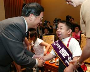 陳總統水扁先生今天接見第七屆「全球熱愛生命獎章」得主,並在致詞前先代表政府及人民,對今天前來總統府的所有獲獎者,表達恭喜與歡迎之意。