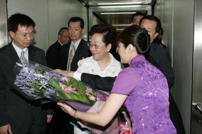 副總統在中正國際機場接受歡送儀式,在場參加儀式的政府首長包括總統府秘書長蘇貞昌、總統府副秘書長卓榮泰、行政院副院長葉菊蘭、外交部長陳唐山及新聞局長林佳龍等人。