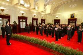 陳總統水扁先生今天親自主持新任政府正副首長宣誓儀式。