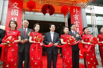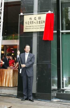 陳總統水扁先生今天上午參加外交部外交領事人員講習所開幕典禮,為大樓啟用揭牌、剪綵,並致詞。