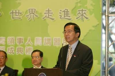 阿扁在五二○就職演說中特別揭櫫政府未來外交施政的願景,「台灣願意持續以積極奉獻的角色參與國際社會,這是兩千三百萬人民應有的權利,也是我們做為世界公民的義務。在全球反恐的浪潮及國際人道援助的行列中,台灣一直沒有缺席。台灣不但要站起來,還要勇敢的走出去,在世界地圖上永續發展、屹立不搖。」希望外交部全體同仁能夠念茲在茲,共同勉勵。
