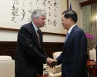 哈佛大學教授艾薩斯博士,下午由行政院衛生署署長陳建仁陪同,前來總統府晉見總統,總統府秘書長蘇貞昌也在座。