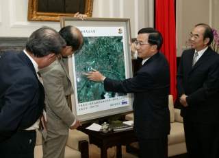 會晤中,訪賓也將甫於七月十六日由華衛二號攝影完成、傳回地面的台南官田空照圖送給總統,對於這幅影像清晰的衛星空照圖,總統表示印象深刻。