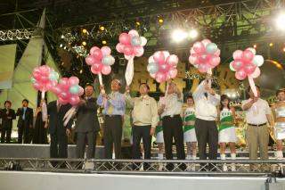陳總統水扁先生今天晚間在台北縣縣民廣場參加「金牌之夜-為奧運英雄加油晚會」,總統致詞時以「出國比賽、得冠軍、拿金牌、光榮到返來!」(台語)來期許中華奧運代表團為國家爭取最高的榮譽,同時也呼籲國人同胞啟動「奧運加油列車」共同為中華隊加油。
