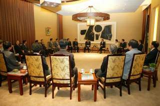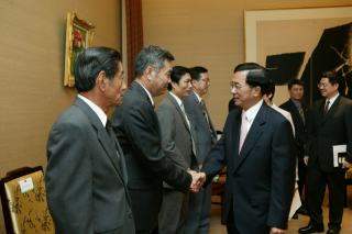 九十二年出進口績優廠商「金貿獎」得獎廠商代表一行,上午由經濟部部長何美玥陪同,前來總統府晉見總統並接受道賀,總統府副秘書長卓榮泰也在座。