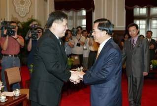 陳總統水扁先生今天接見第八期「全球台灣商會會長班」學員,並致詞。